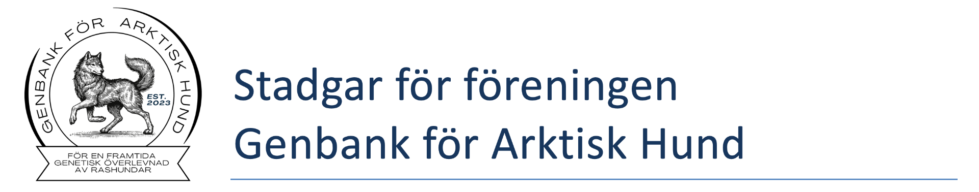 Föreningens namn är Genbank för Arktisk Hund. Föreningen har sitt säte i Sverige.